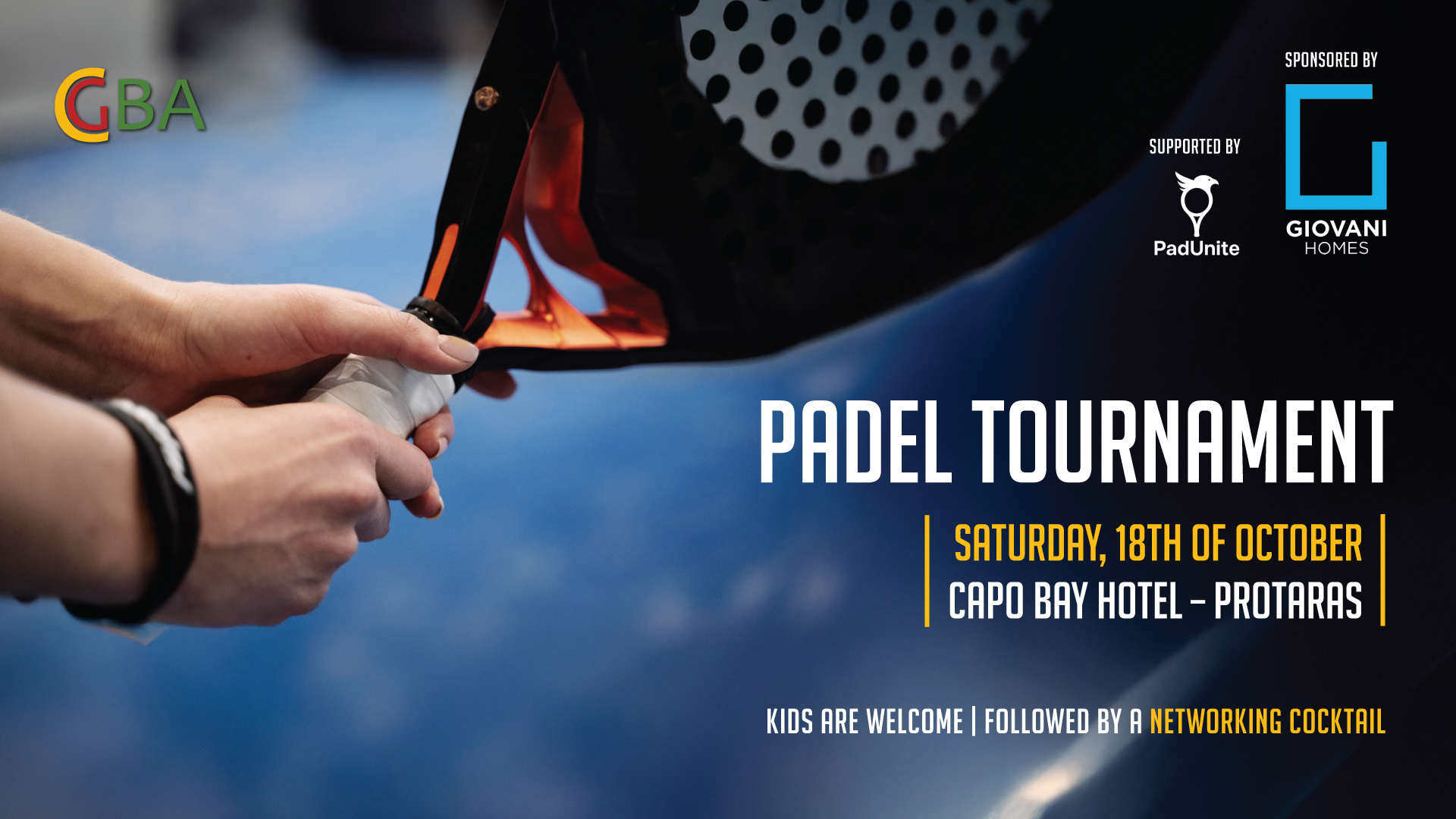 The Cyprus Germany Business Association is pleased to announce the organization of a Padel Tournament, to be held on Saturday, 18 October, at the Capo Bay Hotel in Protaras.